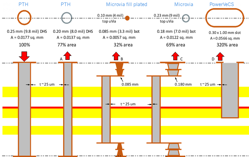 The new slot generations X-VeCS are focussed on pitch around the 0,15mm mark. The focus is to bring the number of packages in an assembly down to reduce cost of the assembly and also reduce the low of the die to die transmission line. These so called CoWoP applications are growing and VeCS can play an interesting role in opening the door for the PCB industry to play a role in the substrate / combined chip package market.